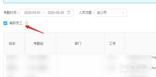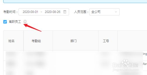 4、在搜刮东西中有个”去职员工“的功能,勾选上就会包含去职人员的考勤信息