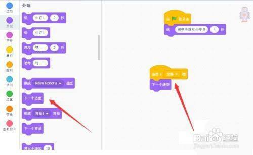 首先导入机械人脚色。scratch3供给了很多现当作的脚色,可以按照需求拿来利用。
