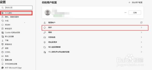 3、在设置中点击小我资料,进入同步