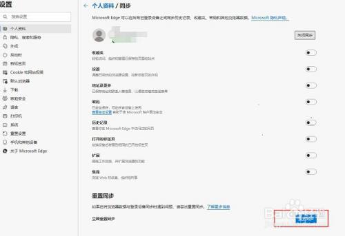 4、找到底部的重置同步,点击即可让同步功能恢复正常