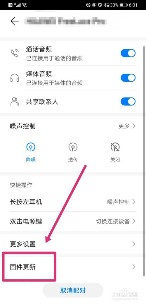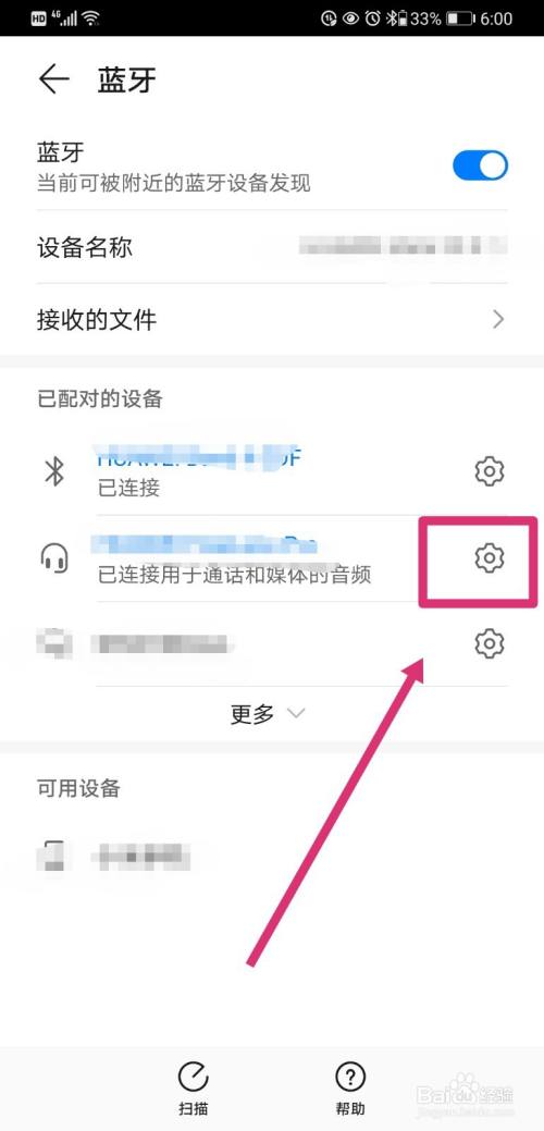 选择已经毗连蓝牙的耳机后的设置符号,点击进入;
