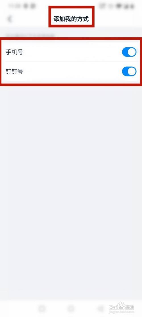 6、默承认以经由过程钉钉号和手机号添加我。滑动按钮,就可以禁用某种体例添加我。