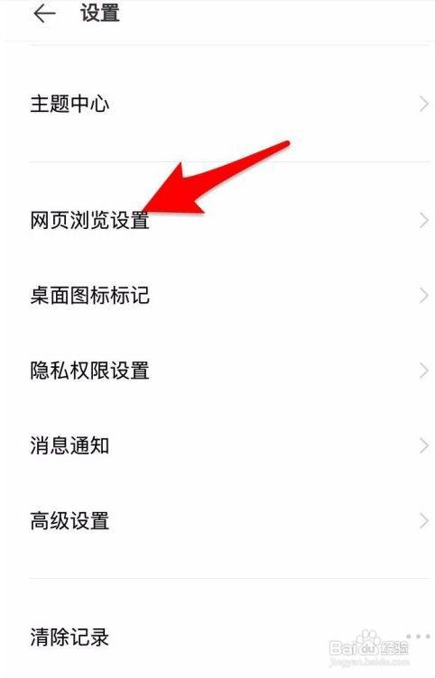 进入到“设置”界面后,找到“网页浏览设置”这几个字,然后点击这个选项;