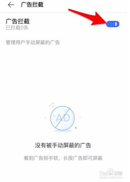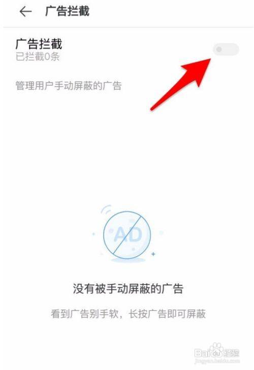 进入到“告白阻挡”界面后,找到“告白阻挡”这4个字右边的开关,点击它;
