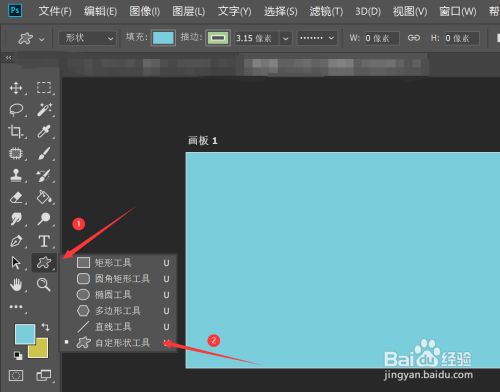 在左侧东西栏中右击矩形东西—>在弹出的选项卡中选择自界说外形东西
