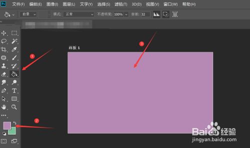 点击左侧东西栏中的油漆桶东西—>更改前景色—>在画板上点击着色