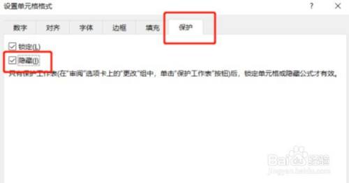 4、在【设置单位格格局】中的【庇护】一项中,勾选【埋没】,然后点击【确定】,如下图;