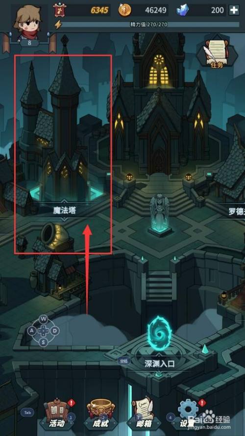 接下来,在我们进入到游戏本家儿界面后,我们点击魔法塔鱼鳔,进入魔法塔界面;