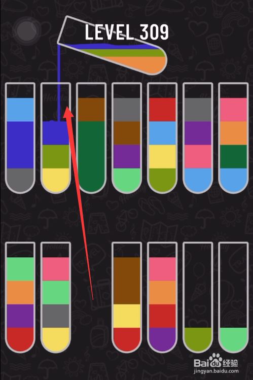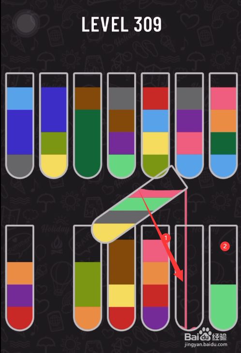 如图所示最终将所有颜色分类到零丁的试管中完当作关卡,点击【NEXT】继续下一关。