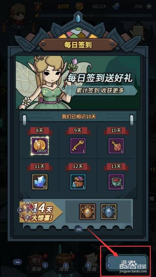 接下来,在我们领完礼包候,我们点击该界面右下角的【退出】按钮,我们就会返回到活动界面;