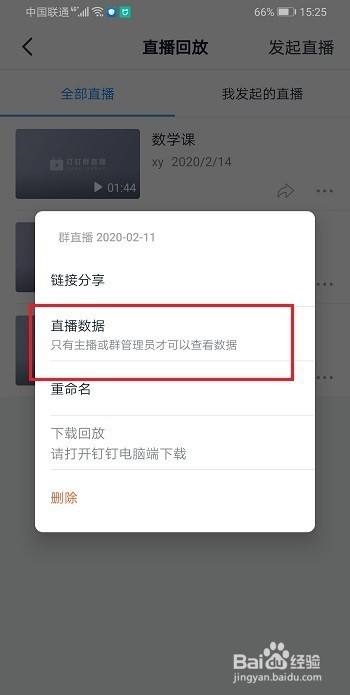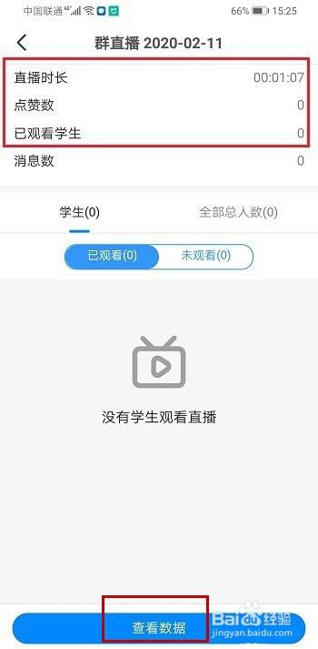 5、点击【查看数据】就可以看到每个看直播人的总时长数据。