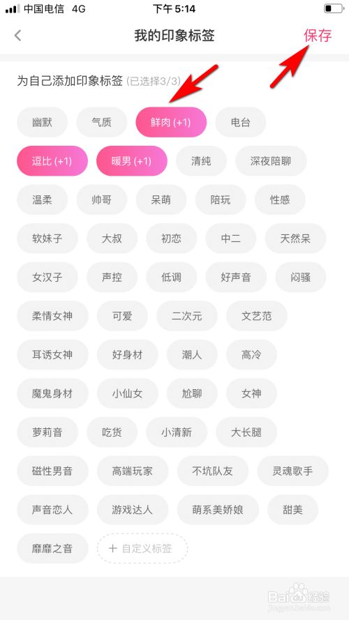 选择方针印象标签的选项后,点击右上角保留的选项即可添加我的印象标签。