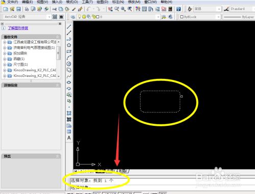 当图元显示虚线后,在号令窗口查看选择对象个数。并点击回车键。