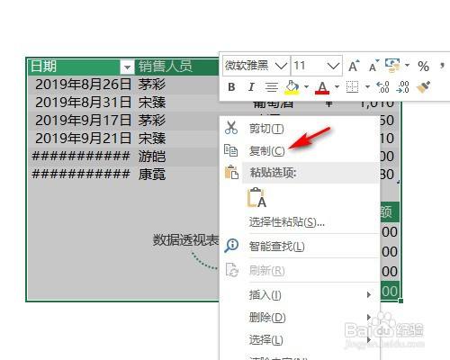 2、右键单击,在弹出窗口中点击复制。