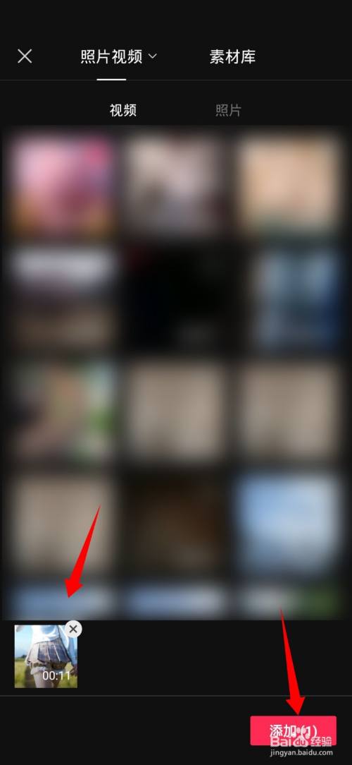 选中视频素材,点击添加。