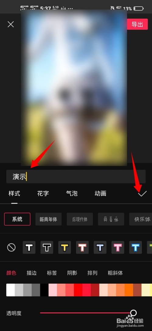在输入框中输入文本文字,点击对号。