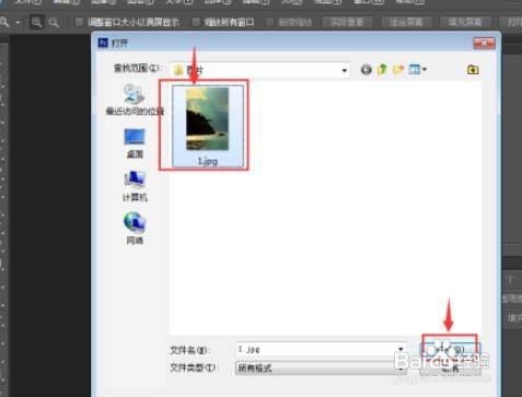 按ctrl+o,在打开窗口选中一张图片,按打开;
