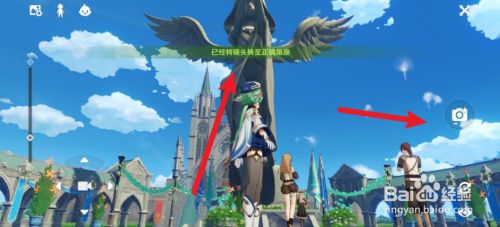 最后点击派蒙,再点击相机,调节角度给神像留影即可。