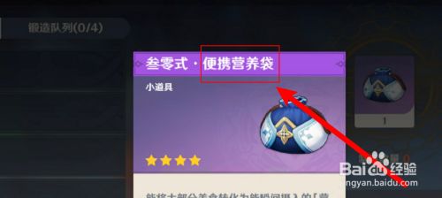 工具/原料 红米k30 变焦版MIUI12.2.3原神1.4.0方式/步骤1进入原神。2进入游戏内,找到瓦格纳,与他对话。3选择第一个选项,委托锻造。4进入锻造后往下滑,就可以看到便携营养袋。45点击便携营养袋,然后点击起头锻造。6最后就可以建造出便携营养袋。END