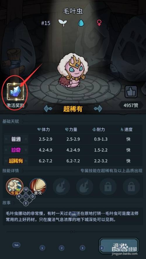 接下来,在我们进入毛叶虫的图鉴界面后,我们点击该界面左上角的【激活奖励】;