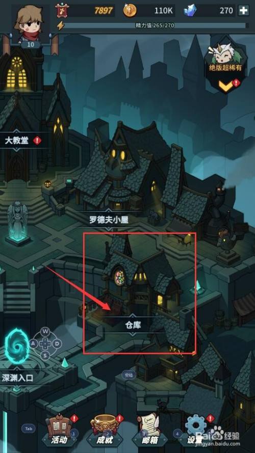 其次,我们在进入游戏本家儿界面后,我们点击仓库图标,进入仓库本家儿界面;