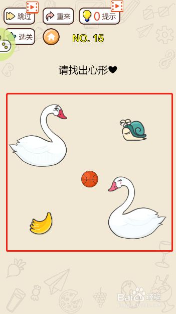 工具/原料联想小新13Windows10方式/步骤1首先看一下这一关的要求是什么2在看到标题问题之后顿时就会有人感觉标题问题里面不就有“心形”3可是呢这个猜测是不合错误的,点击这个心形是不会有任何反映的34然后除此之外呢细心不雅察下面给出的图片看一下有什么线索5不难发现这里面呢两只鹅脖子处都有半个心形6所以我们只需要把两只鹅放到一路就可以找到埋没的心形了END