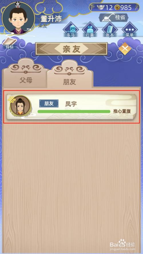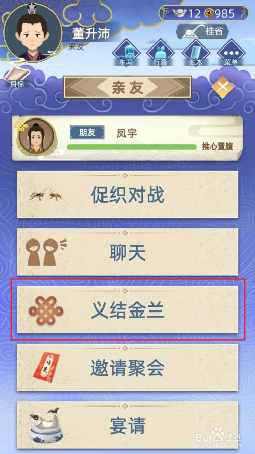 在“亲朋”界面中,选摘要义结金兰的伴侣。