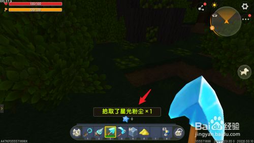 沿着光线找曩昔,找到发光的方块,也就是星光粉尘树叶。