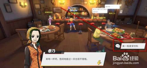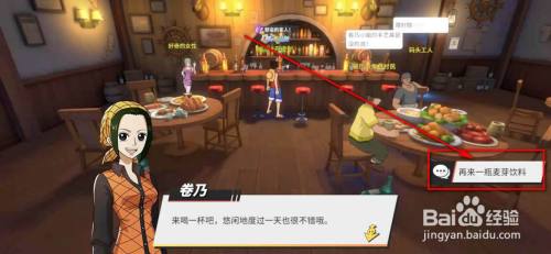 反复和卷乃对话,点击“再来一瓶麦芽饮料”。