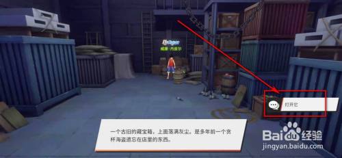 反复点击“酒桶”图标,点击“打开它”将仓库物品拾取即可完当作使命。