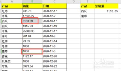 1、表格中记实了产物名称及产量信息,此刻要求我们快速计较产物西瓜和葡萄的总产量。