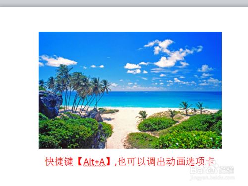 也在激活图片后,直接利用快捷键【Alt+A】,也可以调出动画选项卡;