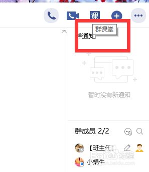 第二:进入班级群点击右上角的【课】按钮开启【QQ群讲堂】直播。
