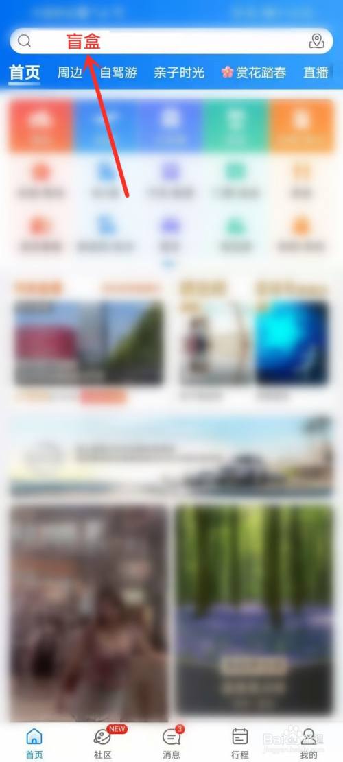 点击页面顶部的搜索框,搜刮”盲盒“,进入盲盒采办界面。