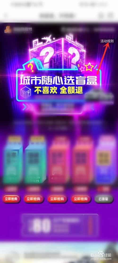 点击右上角【活动法则】,打开机票盲盒活动法则。