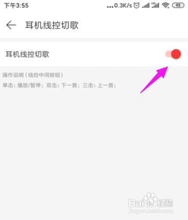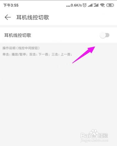 6、直接开启【耳机线控切歌】,如图。