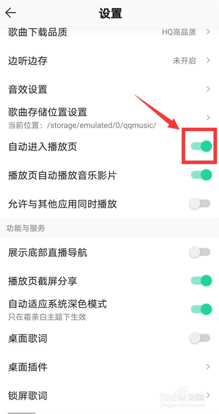 找到“主动进入播放页”。