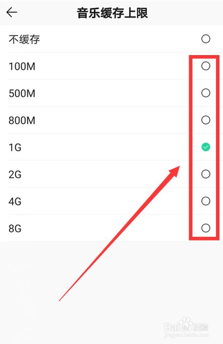 点击“音乐缓存上限”。