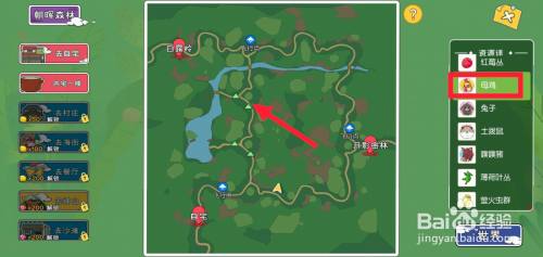 进入朝晖丛林界面后,点击右上角的宿世界地图,找到母鸡地点的位置,点击位置 图标。