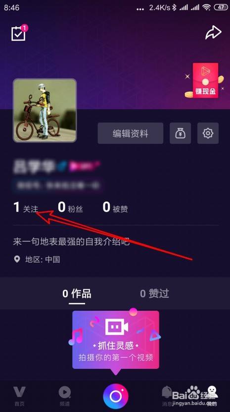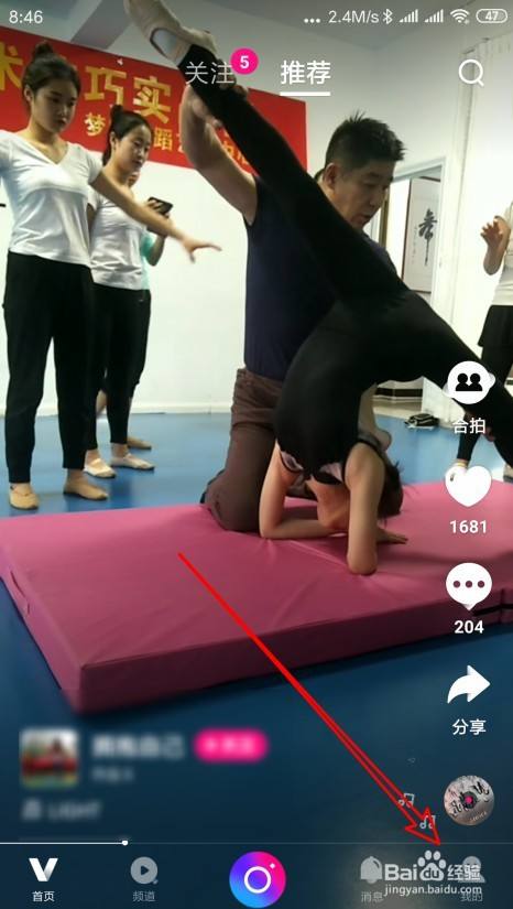然后在打开的微视本家儿界面,点击右下角我的选项卡。