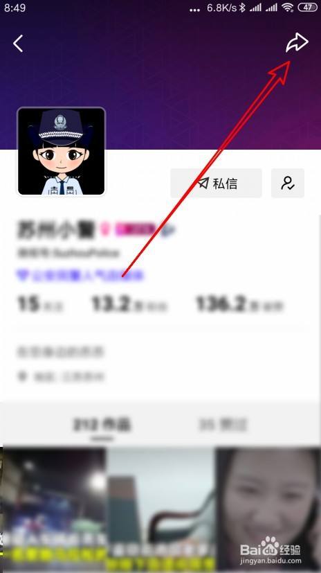 接下来在打开的老友详情页面,点击右上角的分享按钮。