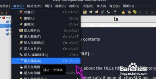打开cherrytree后,选择插入锚点的位置,点【编纂】。