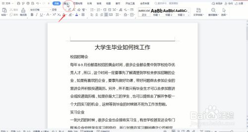 打开一个Word文档,文档上面有一条横线,此刻需要将其去失落。