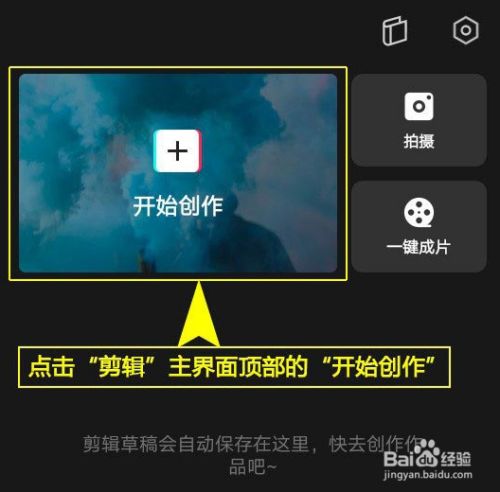 3、起头剪辑。在剪辑本家儿界面顶部,点击“起头创作”。
