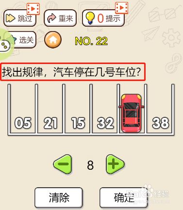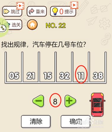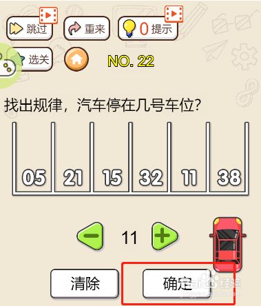 工具/原料联想小新13window10方式/步骤1首先看一下要求“找到汽车停在几号车位”2然后看一下给出的具体场景3细心不雅察给出的车位的排序,没有发现什么较着的纪律4测验考试可不成以经由过程移动汽车的体例看到汽车所停的车位5看到汽车所停的泊车位车号后将谜底设置为对应的值6最后点击【确定】按钮锁定最后的谜底即可END6