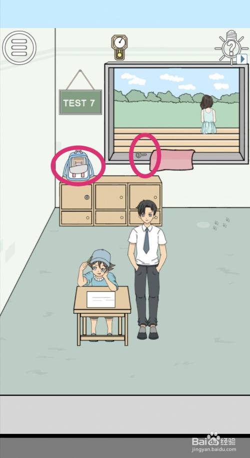 趁着教员与美男聊天时,小男孩就可以拿出藏在帽子里的小抄了。