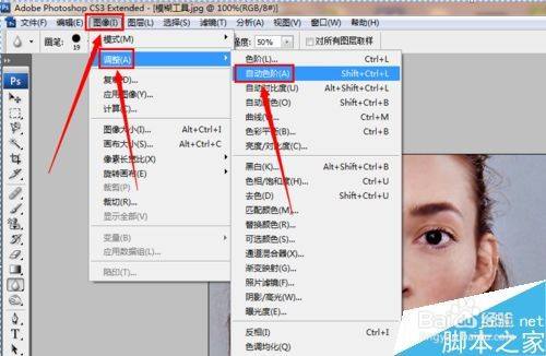 在单击“图像”-“调整”-“主动色阶”。