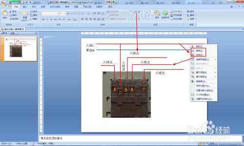 拆下四开单控开关的盖,摄影传到电脑上——在PPT中点击插入——图片——选择开关图片,点击插入。