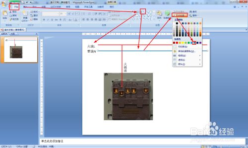起头——画图——直线,画两条程度线——开关轮廓——一条设置为红色,另一条为蓝色,别离标明:前方L、零线N——用红色前方毗连到L接口。