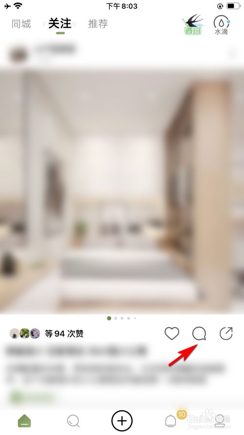 在应用首页中,点击方针作品的图标右下方评论的图标。